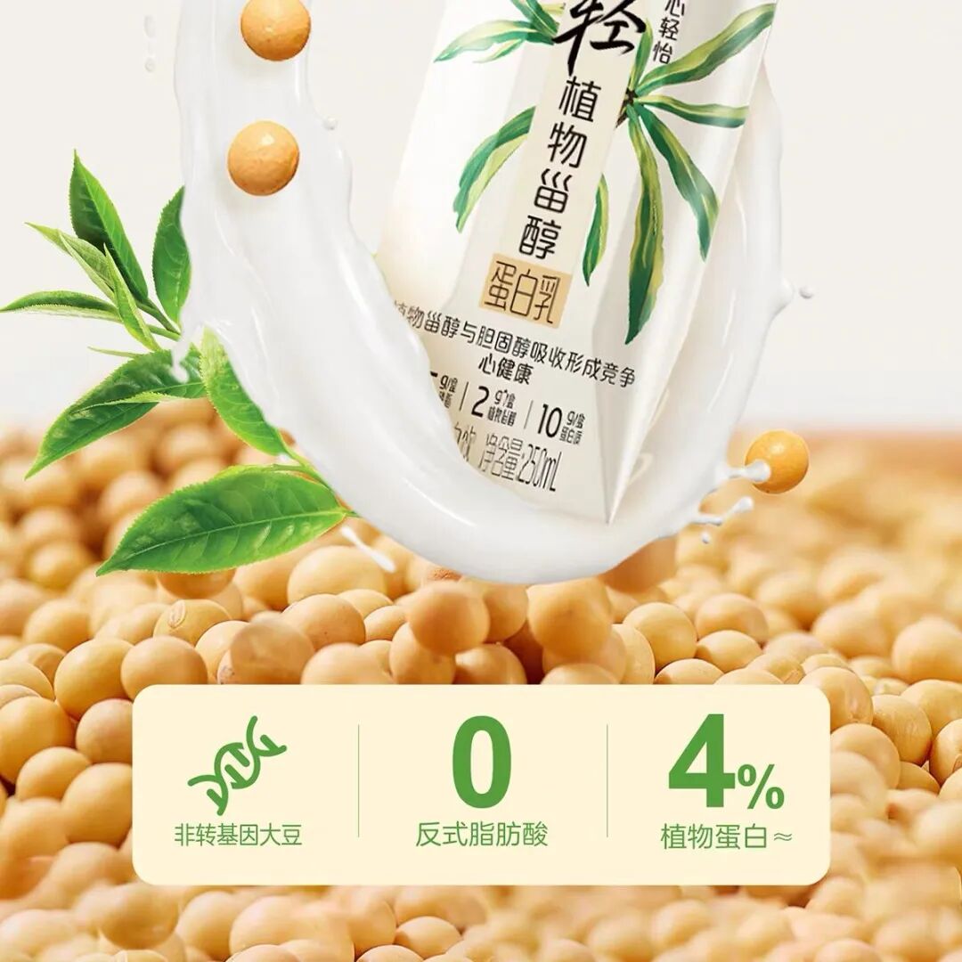 植物甾醇蛋白乳大豆原料来自东北黑龙江地区,历经两道研磨、两次脱渣、高温灭醇,通过蒸汽直喷超高温灭菌,产品口感细腻,品质稳定,每盒添加3.4g植物甾醇酯,有助于降低低密度脂蛋白胆固醇,同时富含2g植物甾醇+0.5g磷脂+10g植物蛋白。