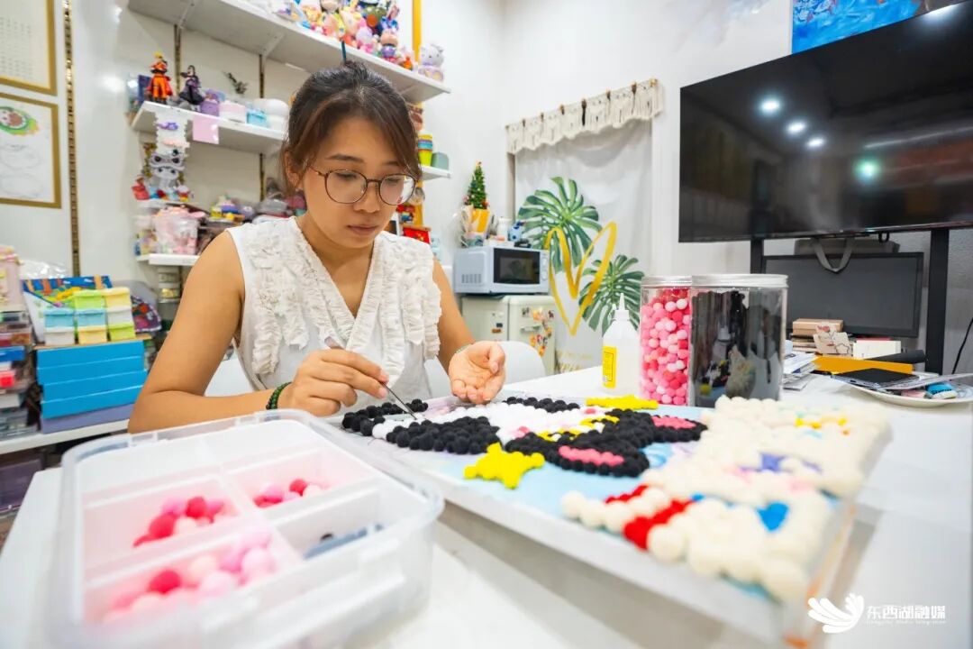 “想寻一处角落,既能让自己玩得尽兴,也能带着他人一同触摸创造的喜悦。”毛丽说,店铺初立时,以奶油胶手机壳、拼豆挂件等二十余种轻手工项目为主,如同一个色彩缤纷的创意集市。
