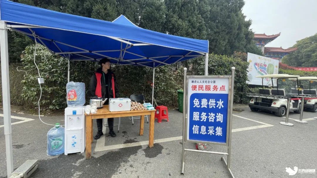 记者在现场看到,睡虎山陵园设立了四个便民服务点,为群众免费提供应急药箱、茶水点心、口罩等便民物品。除此之外,陵园还提供免费电瓶车接驳、免费广播启事、代客祭扫、网络祭扫等服务。服务大厅和“武汉睡虎山人文纪念公园有限公司”公众号则为祭扫群众提供线上线下多渠道墓地查询服务。据了解,今年睡虎山陵园还将增加充电宝、轮椅租借设备,满足群众多样化需求。